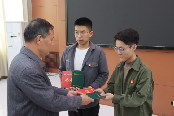 仪式上,焦作市山阳区见义勇为协会副会长王庆仁宣读了《关于杨子旭和张家瑄见义勇为行为认定报告》;协会秘书长郭建民为两位同学颁发见义勇为荣誉证书和奖金。